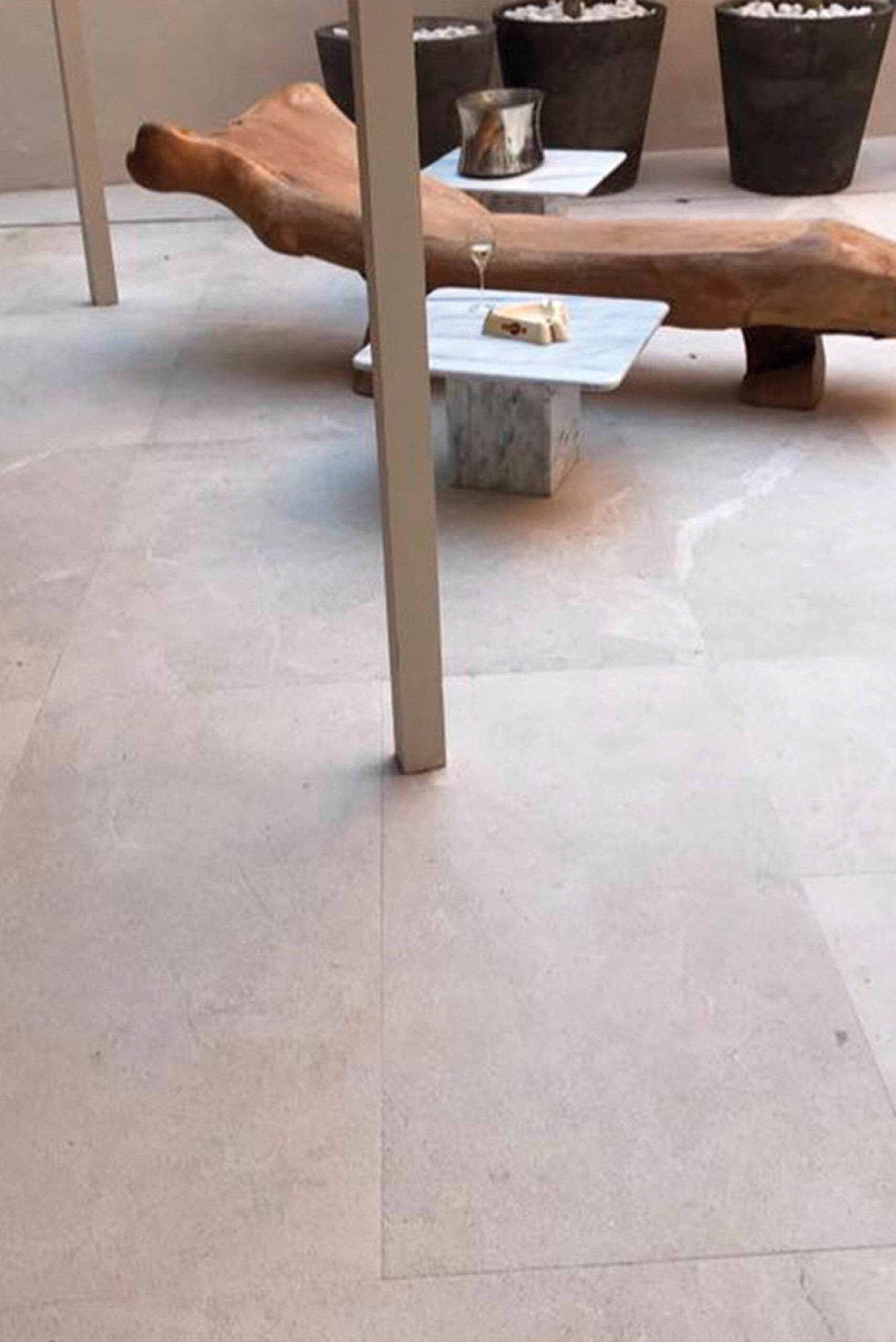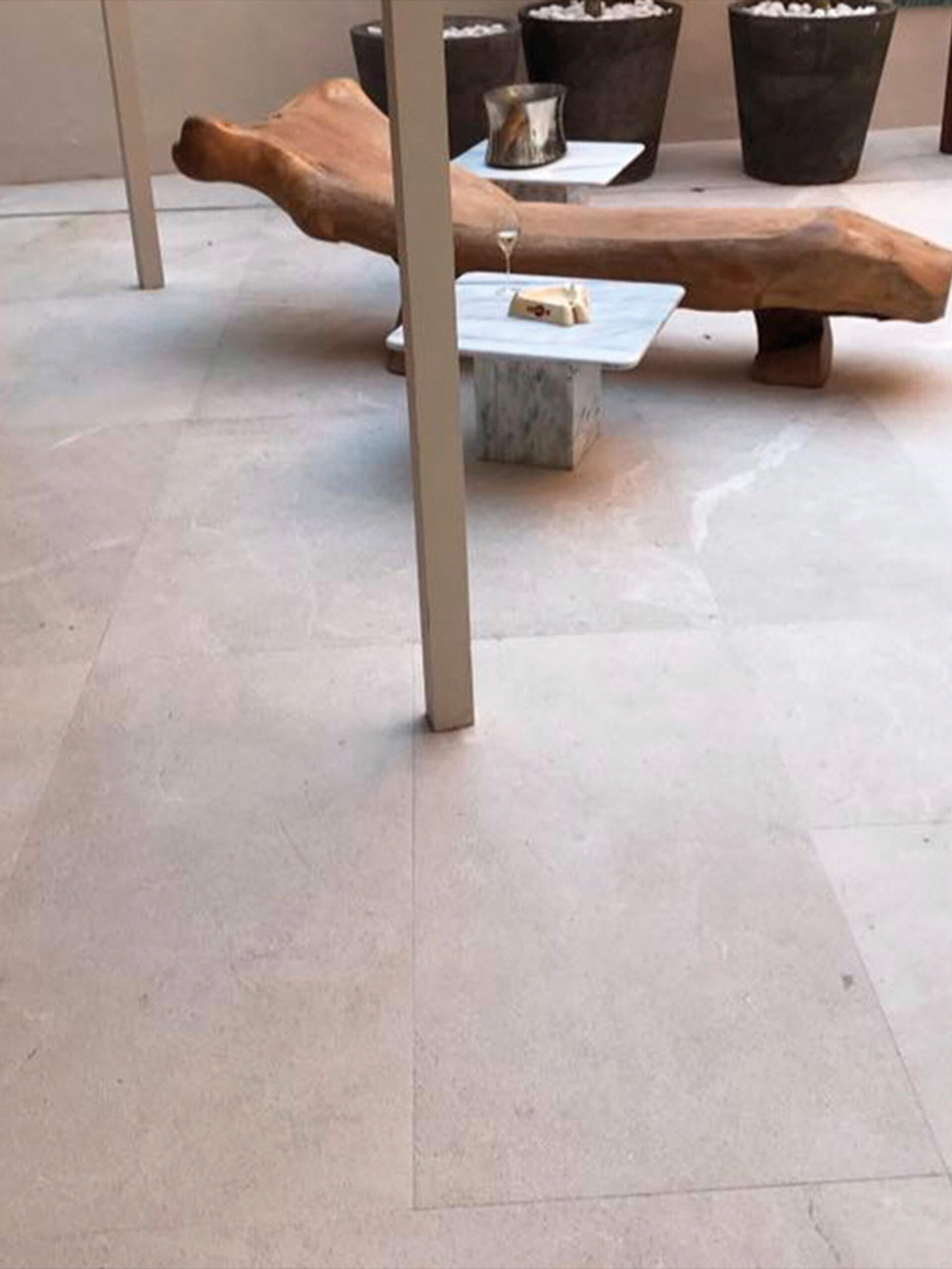 Es una caliza marmórea muy densa y dura que suele presentar vetas de calcita. Tiene un agradable tacto texturado y patinado y sus tonos están dentro de los arena, moka, crema y gris cálido. Viene con cantos rectos no desgastados pero con una textura más pronunciada que la PETRA S+B.